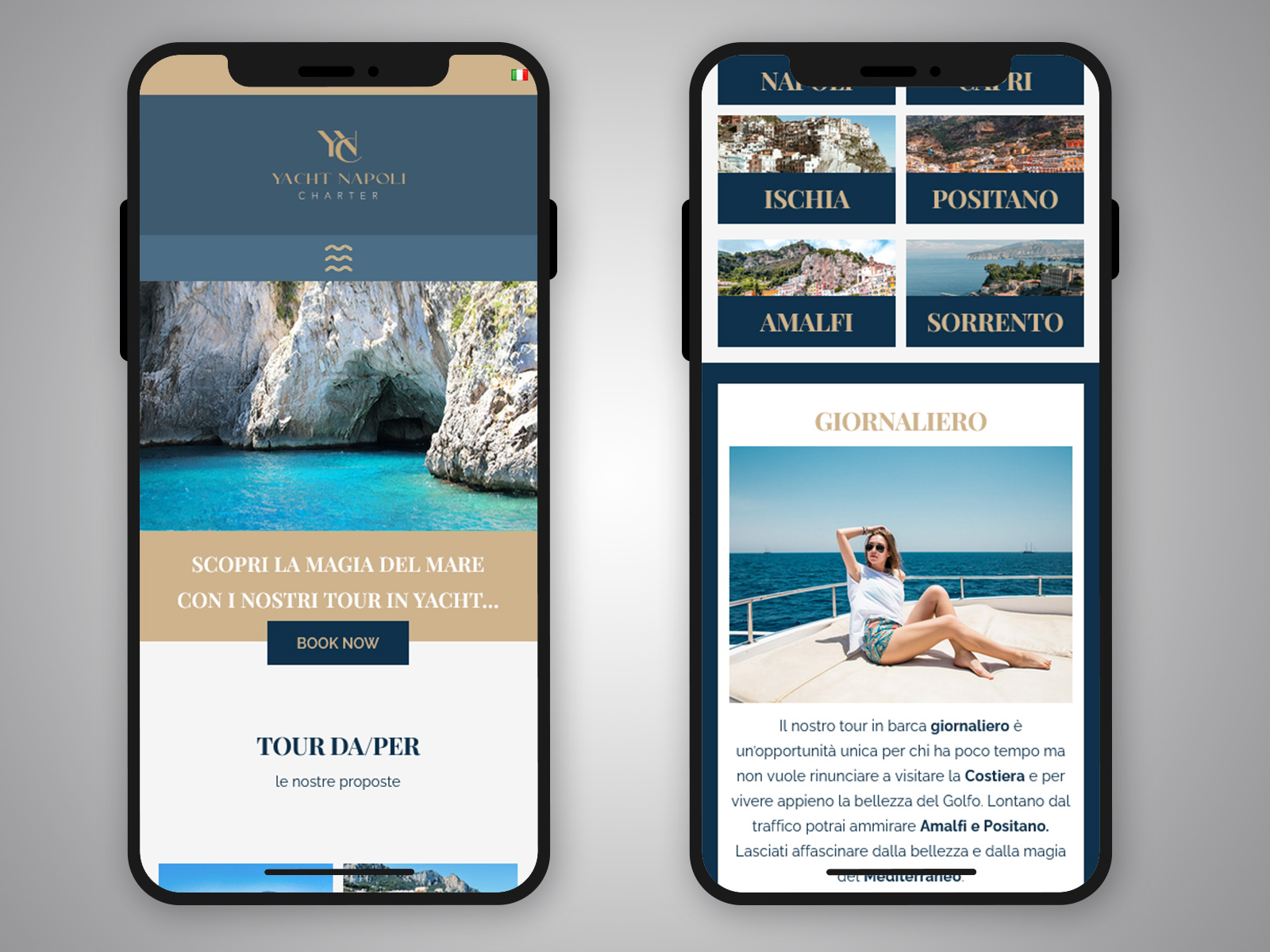 Creazione di un sito emozionale e funzionale per Yacht Napoli Charter, società con trent’anni di esperienza nel noleggio imbarcazioni di lusso nel Golfo di Napoli, con focus su tour, trasferimenti privati, eventi, aperitivi al tramonto e charter giornalieri, weekend o settimanali . Il sito racconta la passione per il mare, l’identità del brand e l’eccellenza dei servizi.